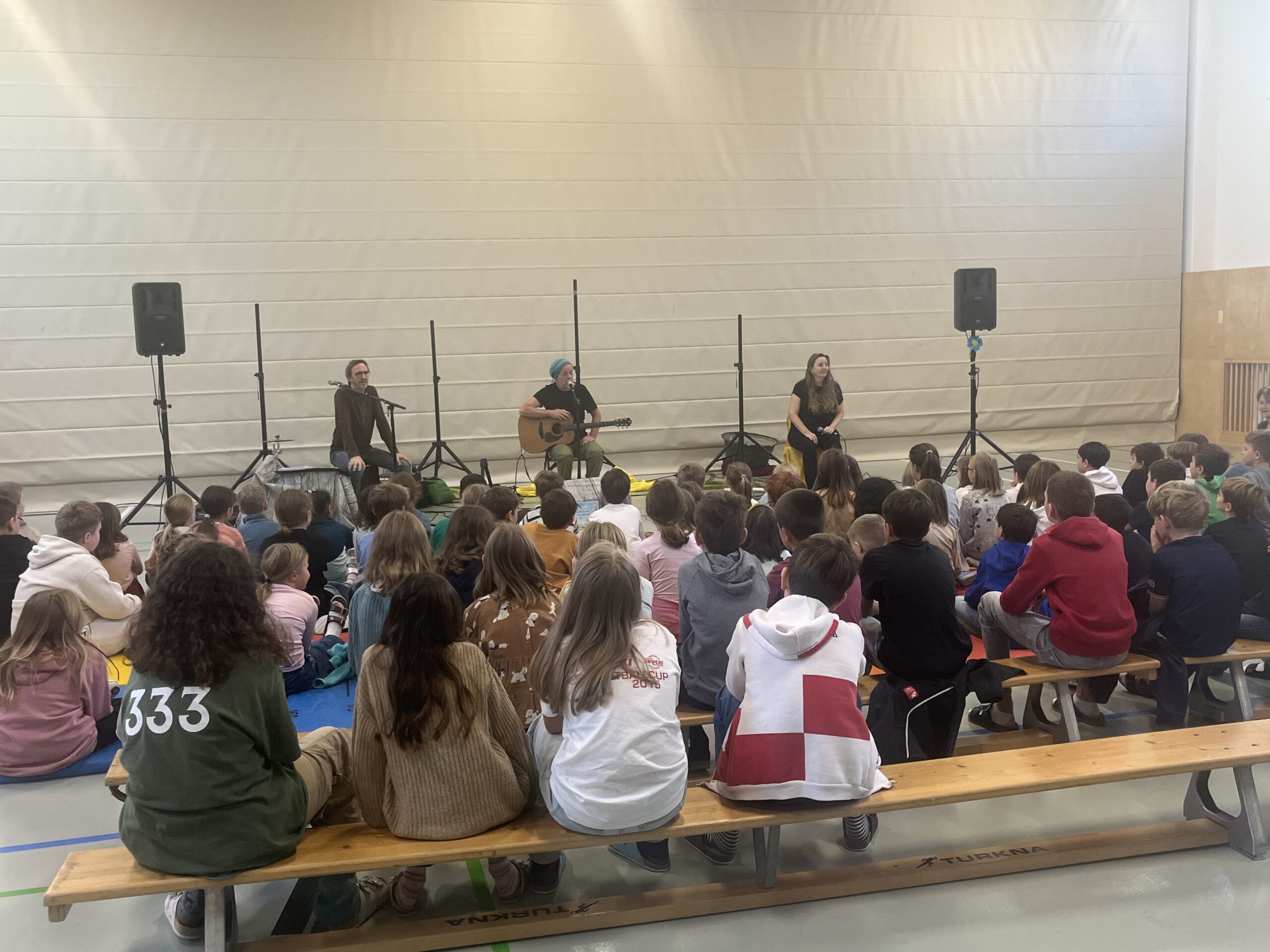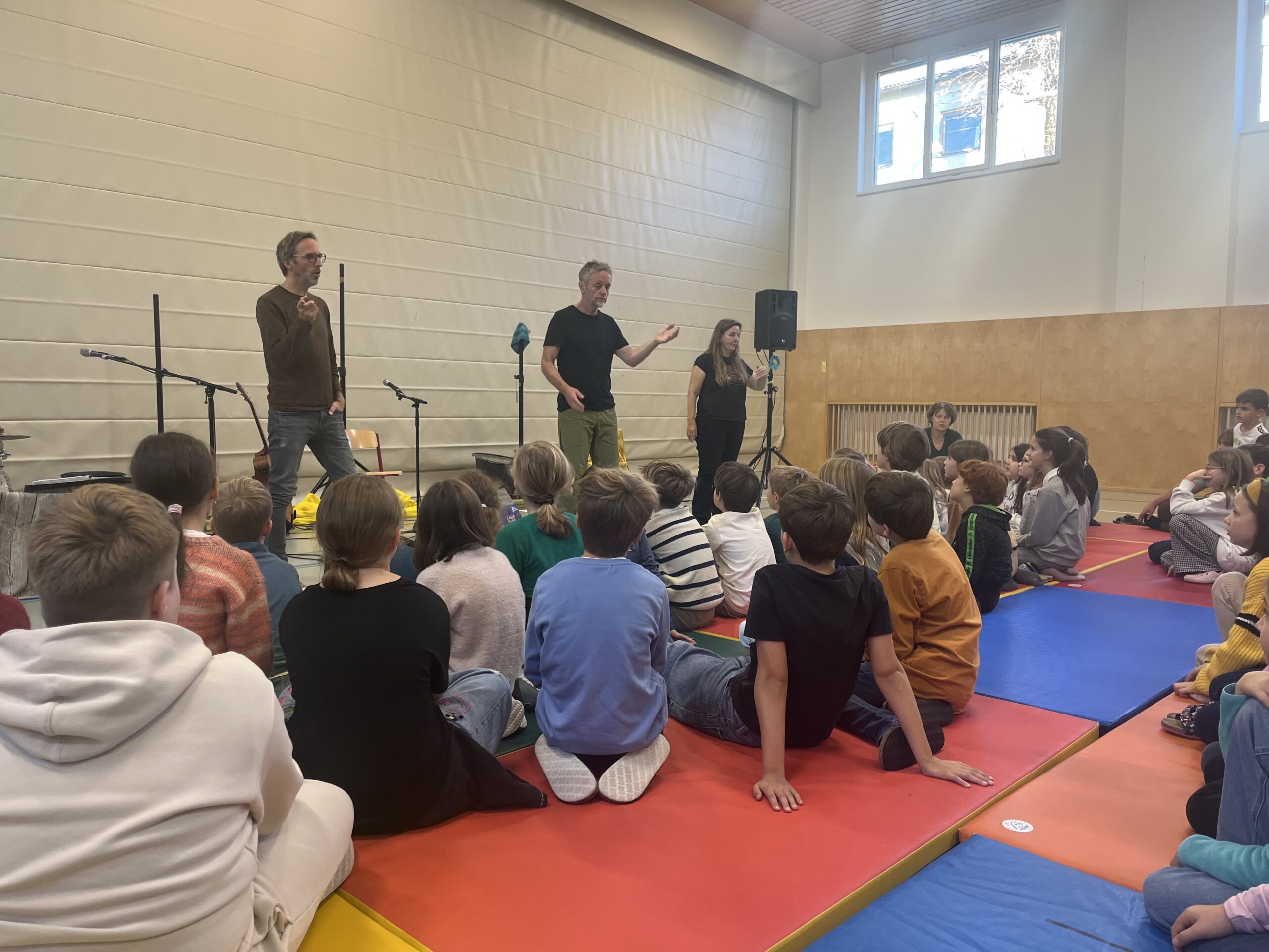 Über den Vormittag verteilt fanden mehrere Vorstellungen statt, sodass jede Klasse die Möglichkeit hatte, Teil des musikalischen Abenteuers zu werden. In den vier Stunden lernten die Kinder gemeinsam mit den Künstlerinnen und Künstlern die Lieder und Bewegungen des Stücks kennen. Mit großer Begeisterung sangen, klatschten und tanzten sie schließlich bei der Aufführung mit und ließen die Geschichte rund um den kleinen Zwerg Zatsch und seine Begleiter lebendig werden.