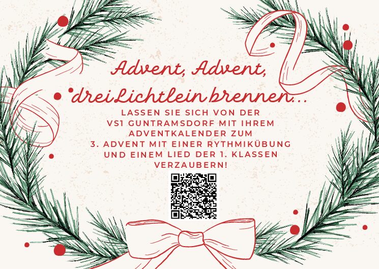 Für den Advent 2025 haben wir als Volksschule uns etwas ganz Besonderes überlegt. So möchten wir Sie alle in unseren Schulalltag mitnehmen und mit einigen adventlichen Beiträgen verzaubern. Genießen Sie am ersten Adventsonntag den musikalischen Beitrag unserer 3. und 4. Klassen, mit dem in diesem Jahr der Guntramsdorfer Adventmarkt eröffnet wurde!