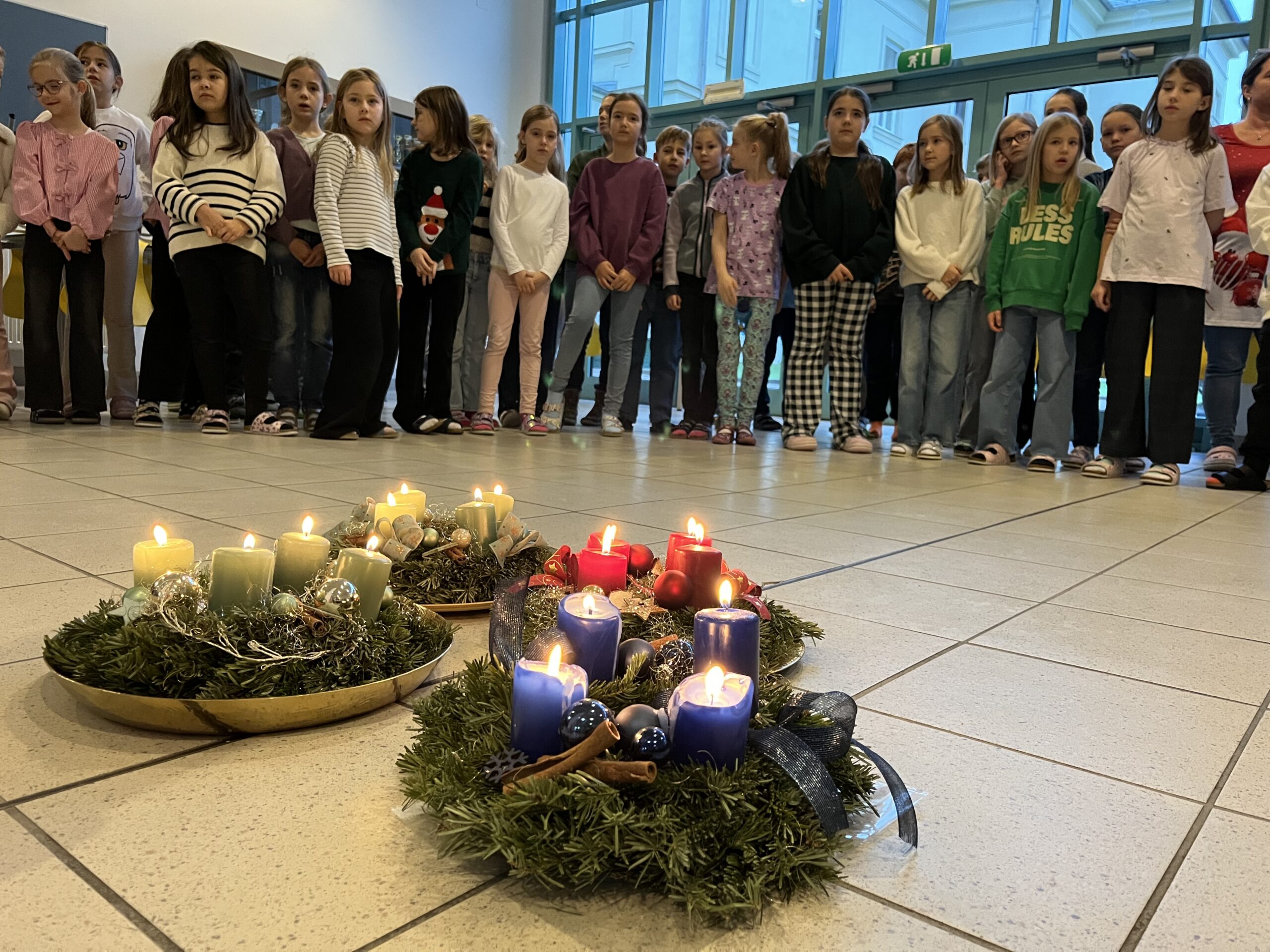 Wie jedes Jahr versammeln sich nun an jedem Freitag im Advent alle Klassen in der Aula, um gemeinsam innezuhalten. Mit musikalischen, rhythmischen und literarischen Beiträgen gestalten die Kinder diese Zusammenkünfte abwechslungsreich und mit viel Herz. So entstehen Woche für Woche besinnliche Augenblicke des Miteinanders, die die Vorfreude auf Weihnachten spürbar machen und unsere Schulgemeinschaft stärken.